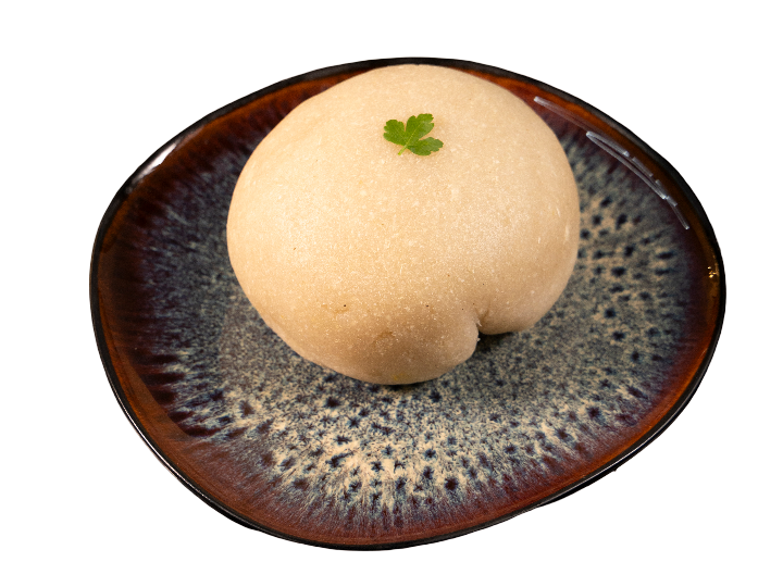 Garri (cassava flakes) mixed with hot water into a smooth swallow.