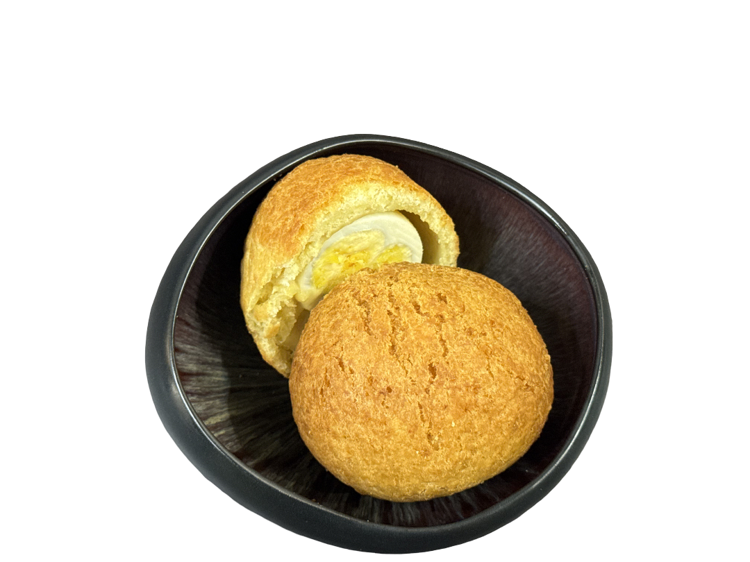 Boiled egg encased in seasoned dough and fried to golden perfection.