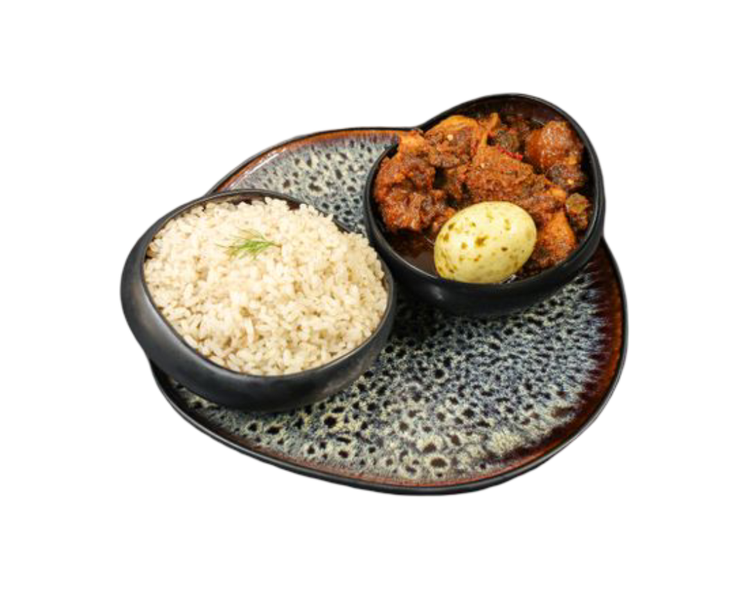 Local Ofada rice served with rich spicy Ayamase sauce and assorted meats.